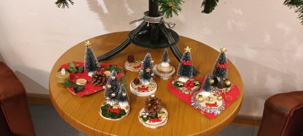 .Décoration de Noel sur bois de bouleau , chants de noël avec Jacques, contes avec Sandrine. De jolis ronds de bouleau découpés par un ami sculpteur. Collages, peinture, paillettes, libre imagination.