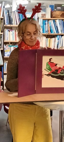 Neli a apporté son Kamishibai et nous emmène dans les contes et rêveries de Noël.